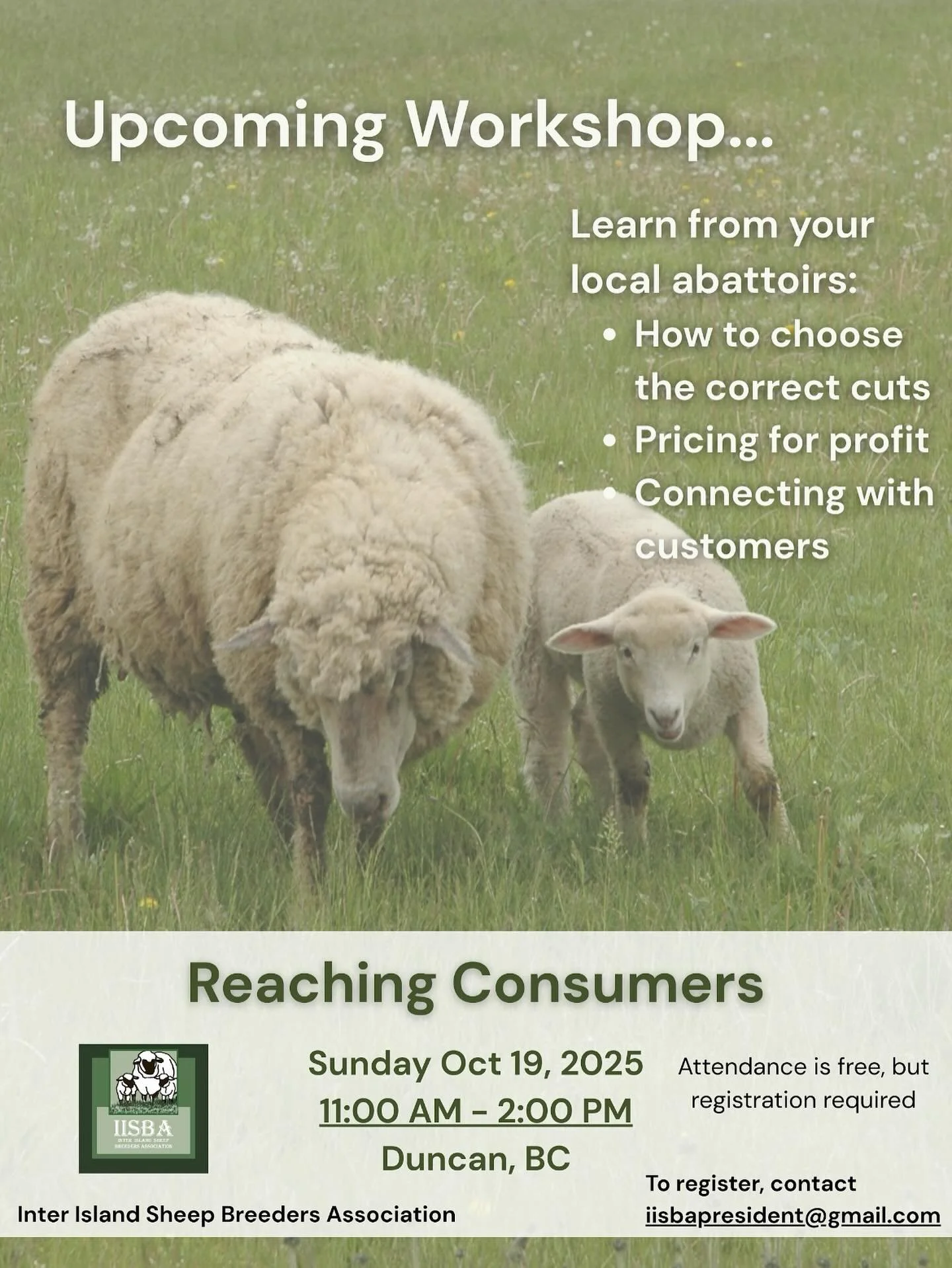 Bringing together the sheep producers of the Vancouver Island Coastal Region of British Columbia, for the sharing of knowledge regarding all aspects of the sheep industry.